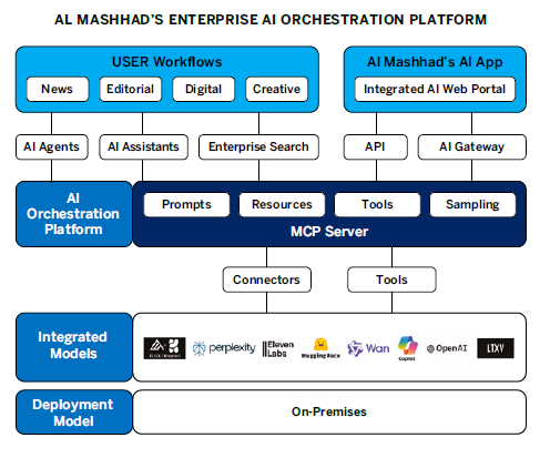 Another major milestone I’m involved in is the advancement of Al Mashhad’s proprietary Multimodal Context Protocol (MCP) an in-house framework fine-tuned for Arabic media workflows. The MCP integrates text, video, and audio models, enabling generative capabilities like text-to-video, avatar-based synthesis, and voice cloning, powered by high-performance GPU servers for real-time processing.